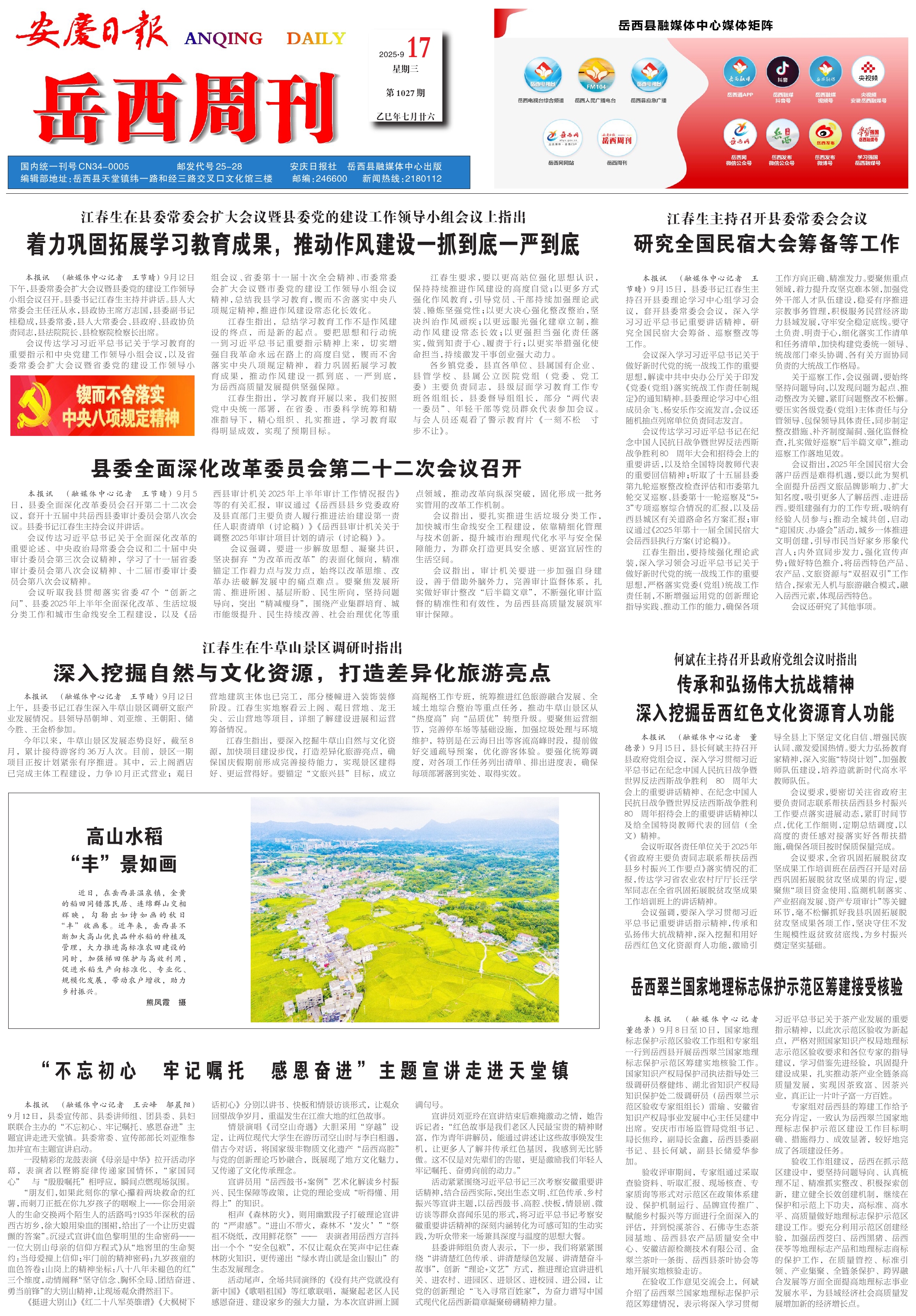 本报讯 (融媒体中心记者 董德景)9月8日至10日,国家地理标志保护示范区验收工作组和专家组一行到岳西县开展岳西翠兰国家地理标志保护示范区筹建实地核验工作。国家知识产权局保护司执法指导处三级调研员蔡健炜、湖北省知识产权局知识保护处二级调研员(岳西翠兰示范区验收专家组组长)雷瑜、安徽省知识产权局事业发展中心主任吴建中出席。安庆市市场监管局党组书记、局长焦玲,副局长金鑫,岳西县委副书记、县长何斌,副县长储爱华参加。